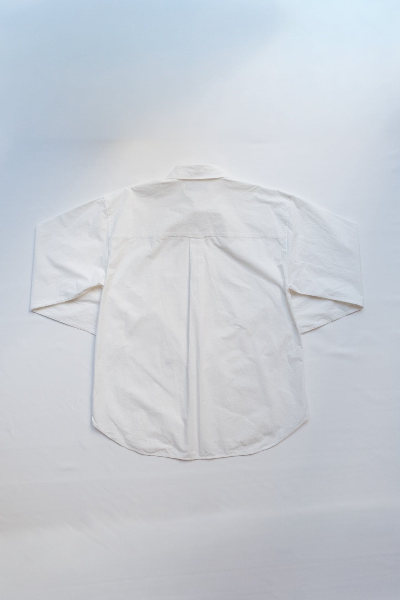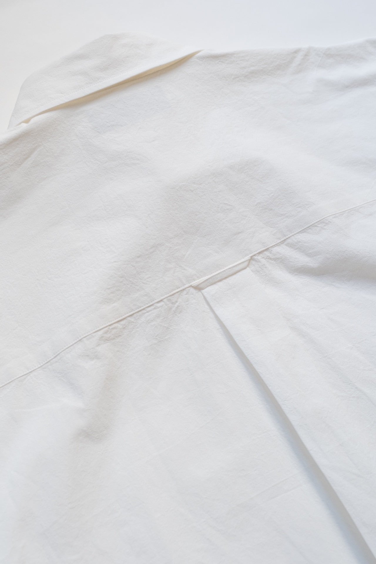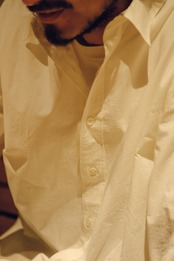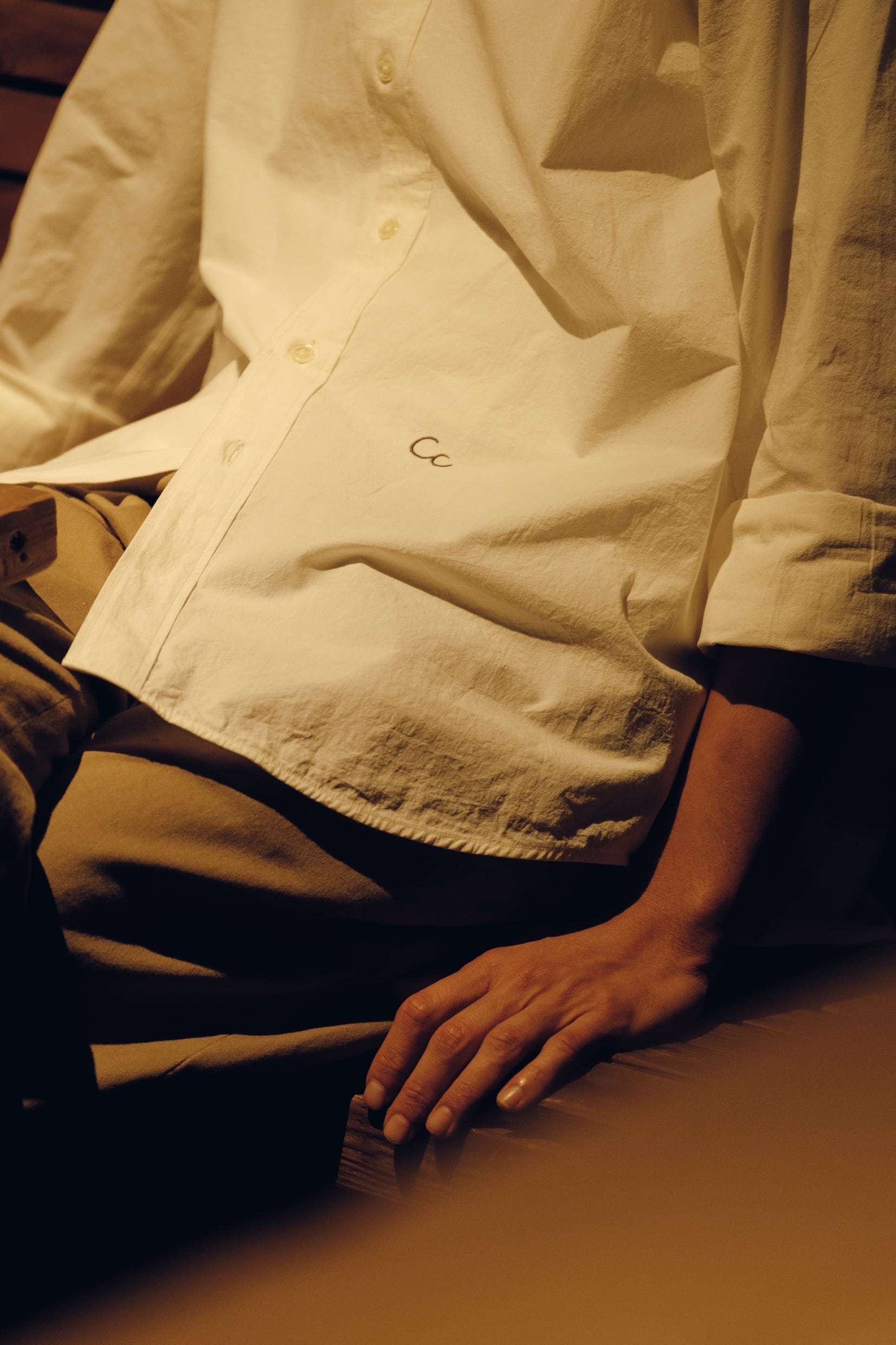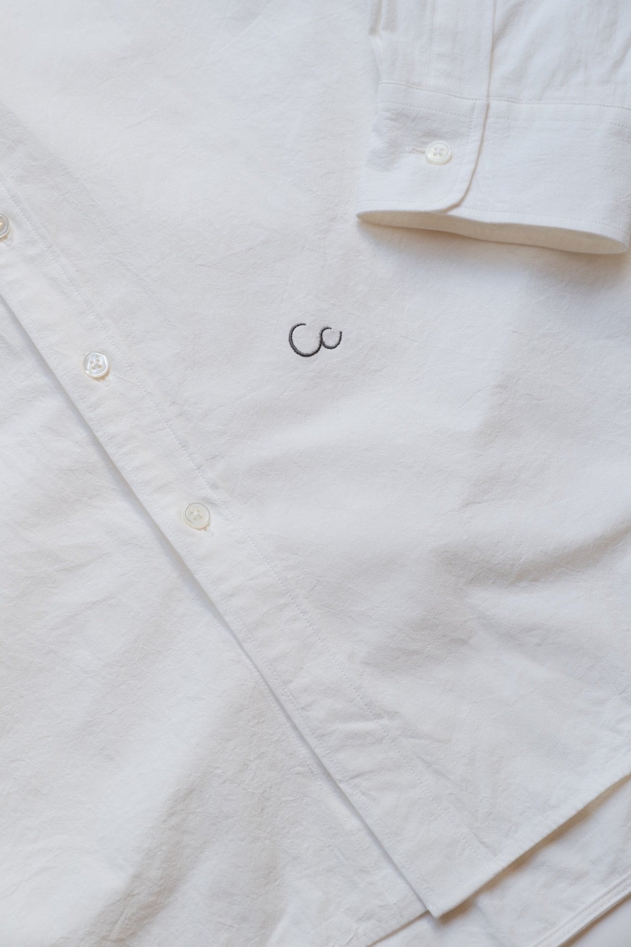 The silhouette is relaxed yet well-balanced, and a subtle one-point embroidery adds a quiet accent. We paid close attention to the neckline, refining it so that leaving one or two buttons undone creates a natural, effortless sense of ease.
