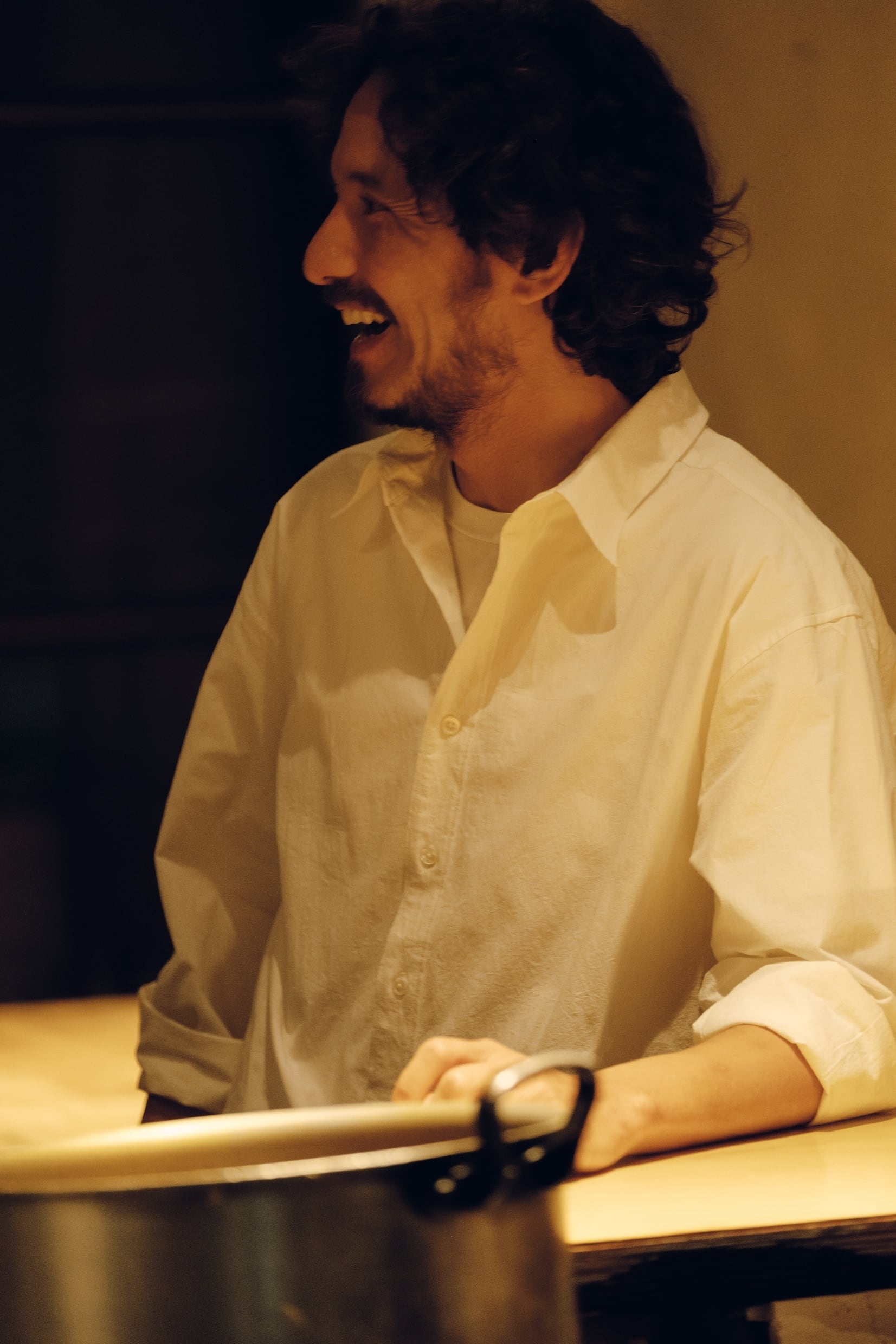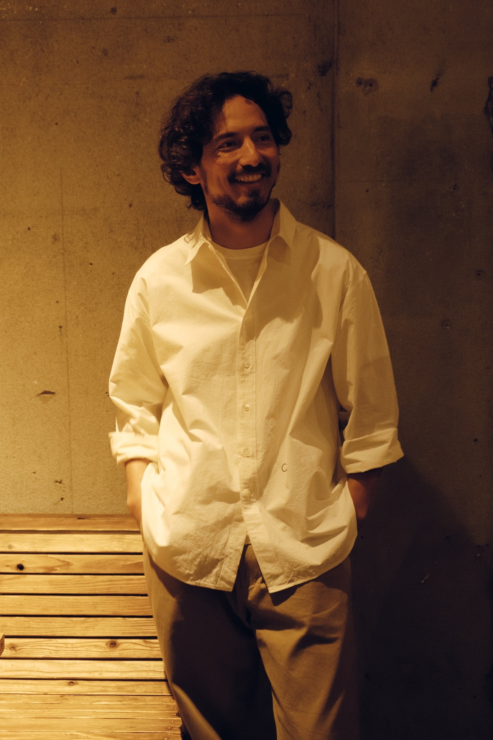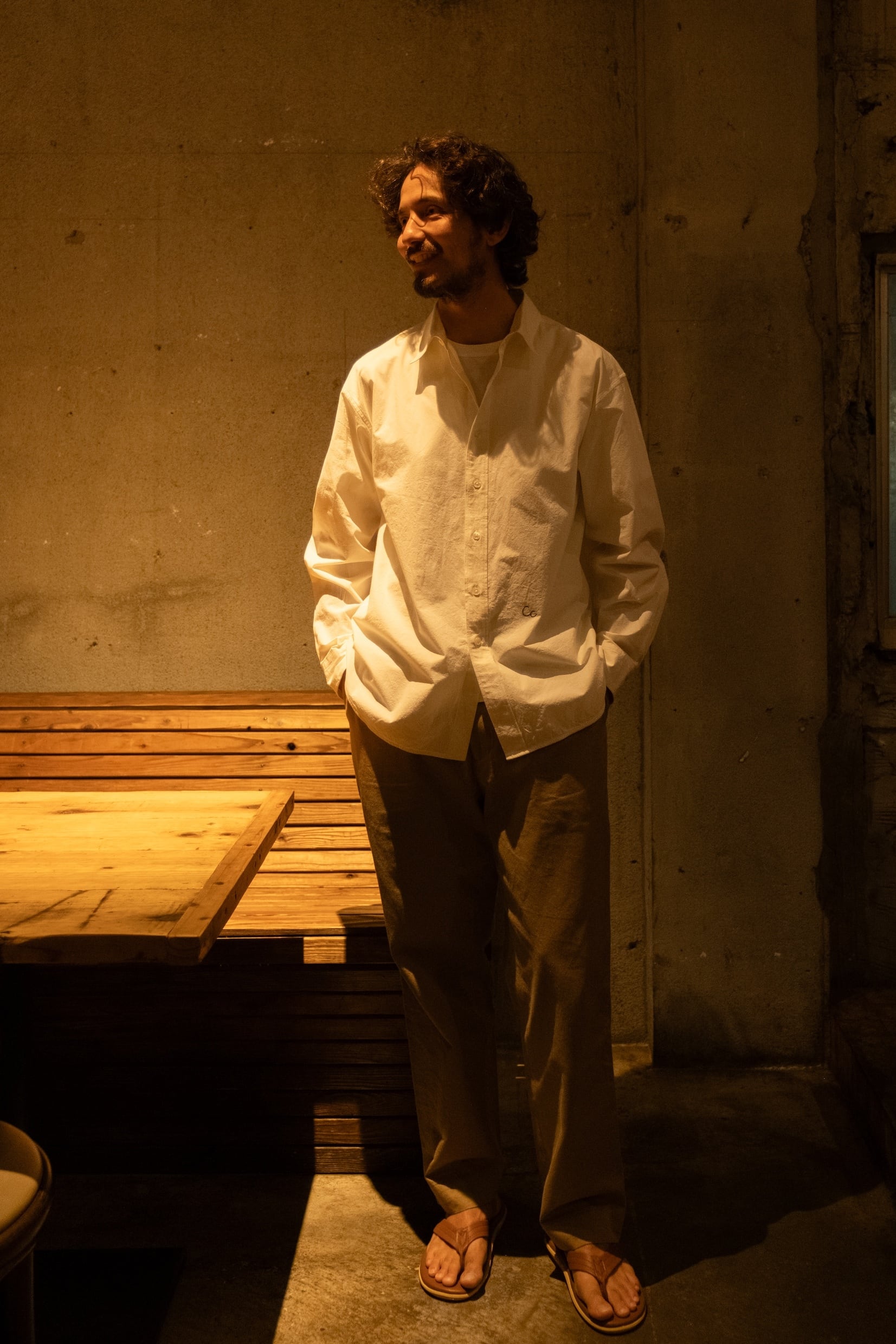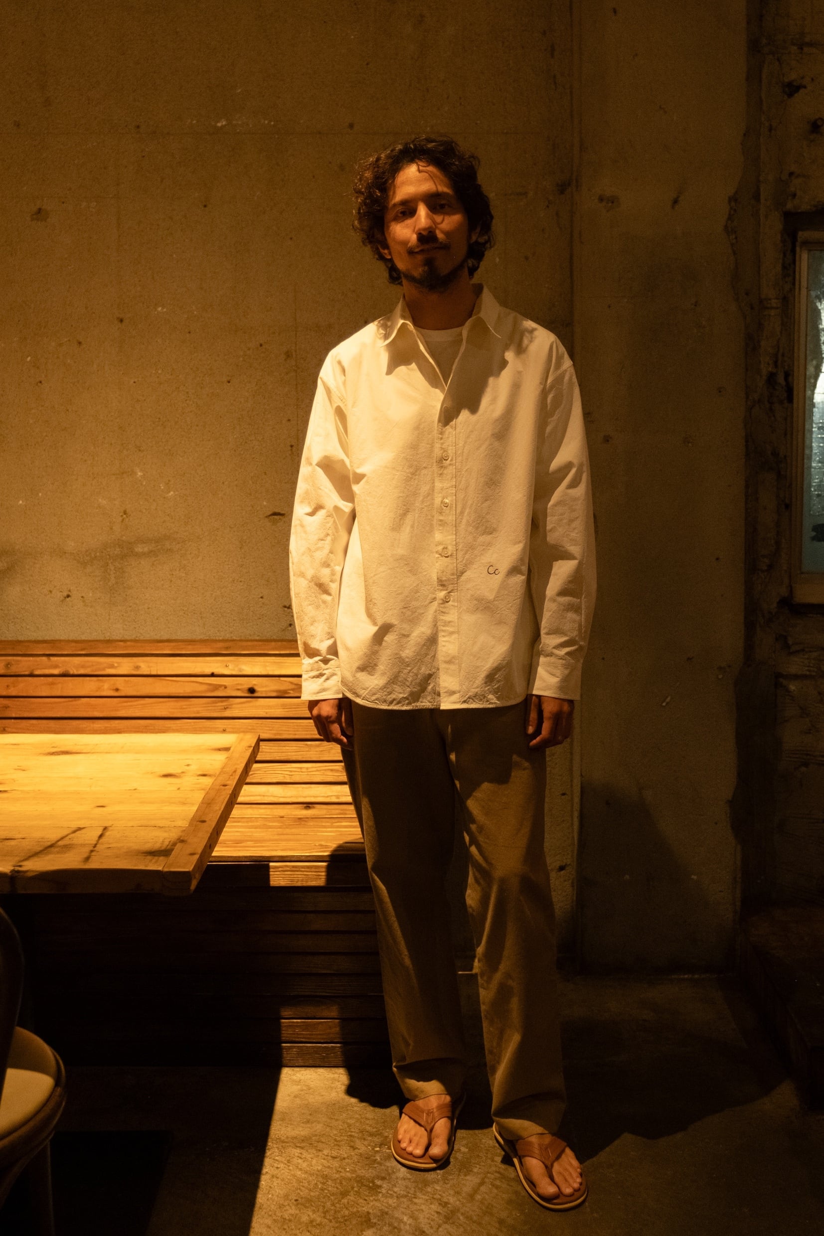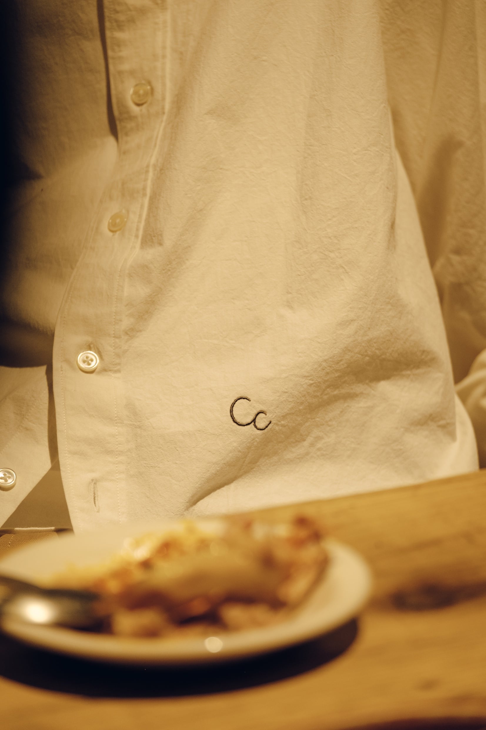 The silhouette is relaxed yet well-balanced, and a subtle one-point embroidery adds a quiet accent. We paid close attention to the neckline, refining it so that leaving one or two buttons undone creates a natural, effortless sense of ease.