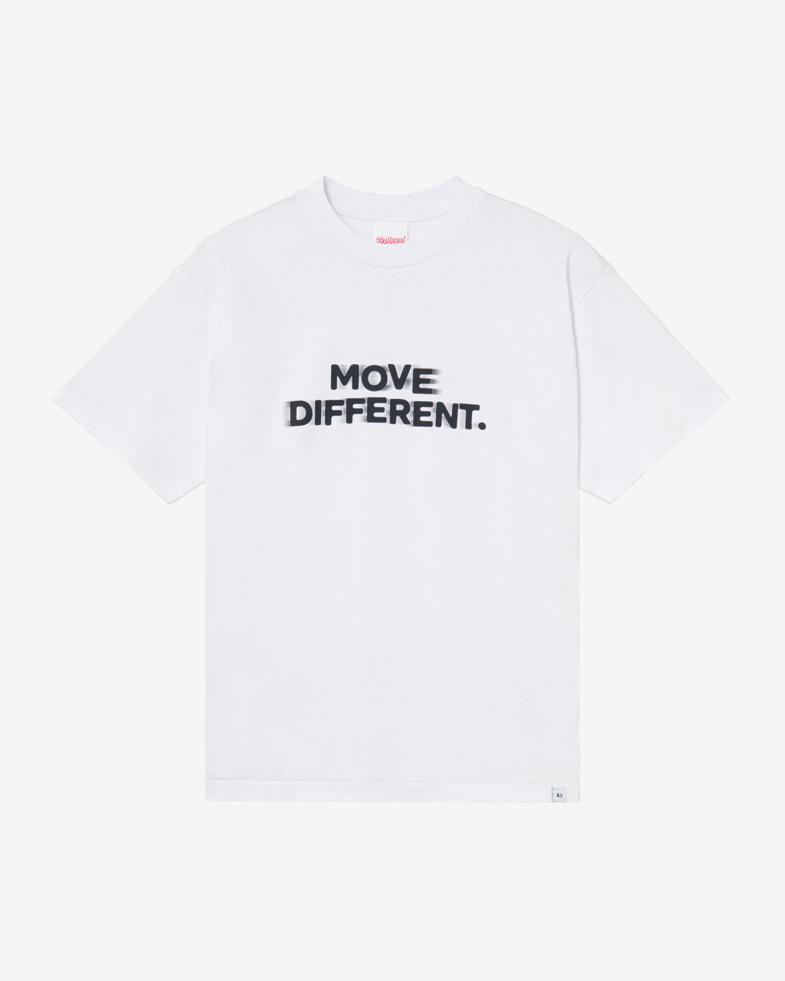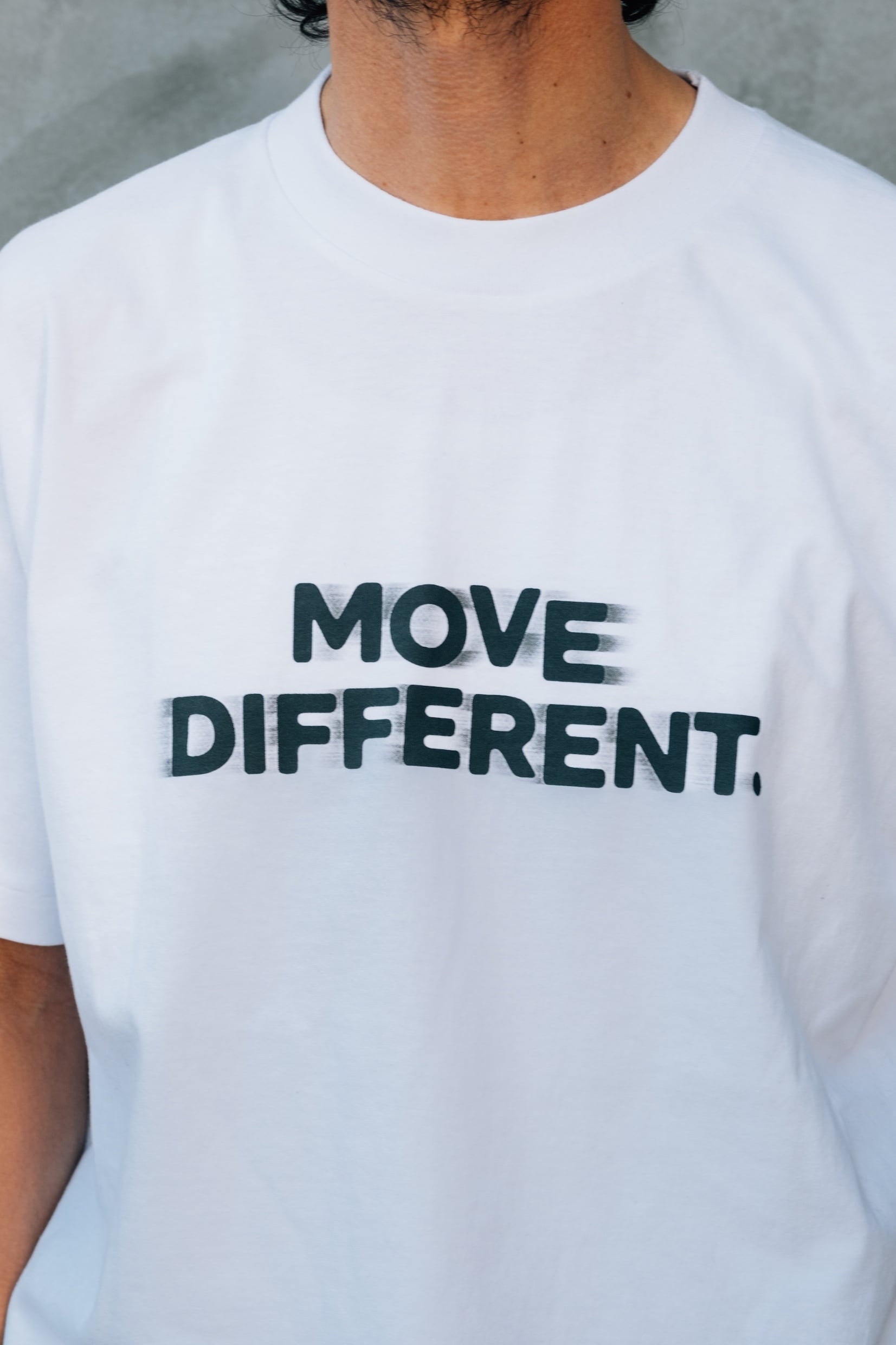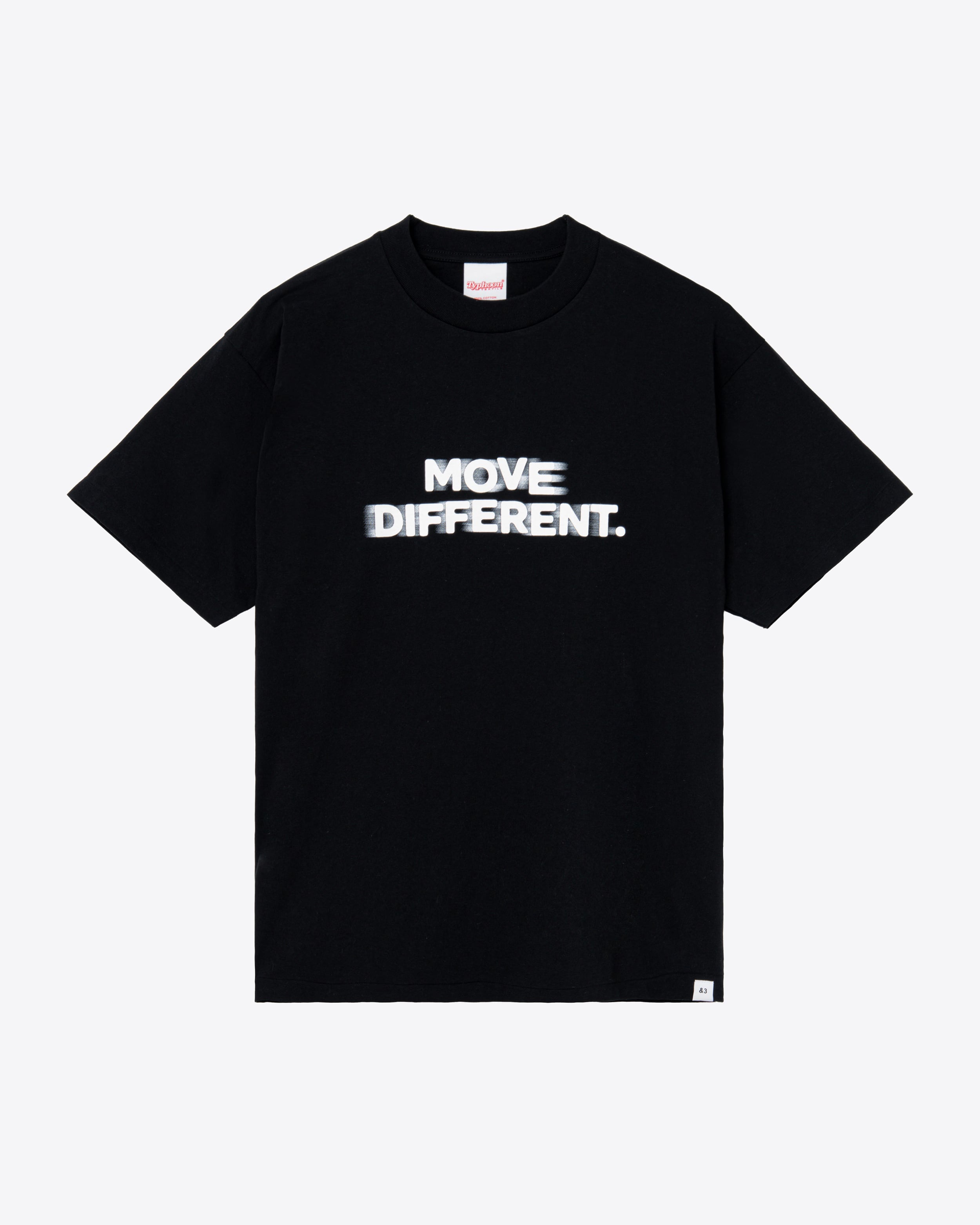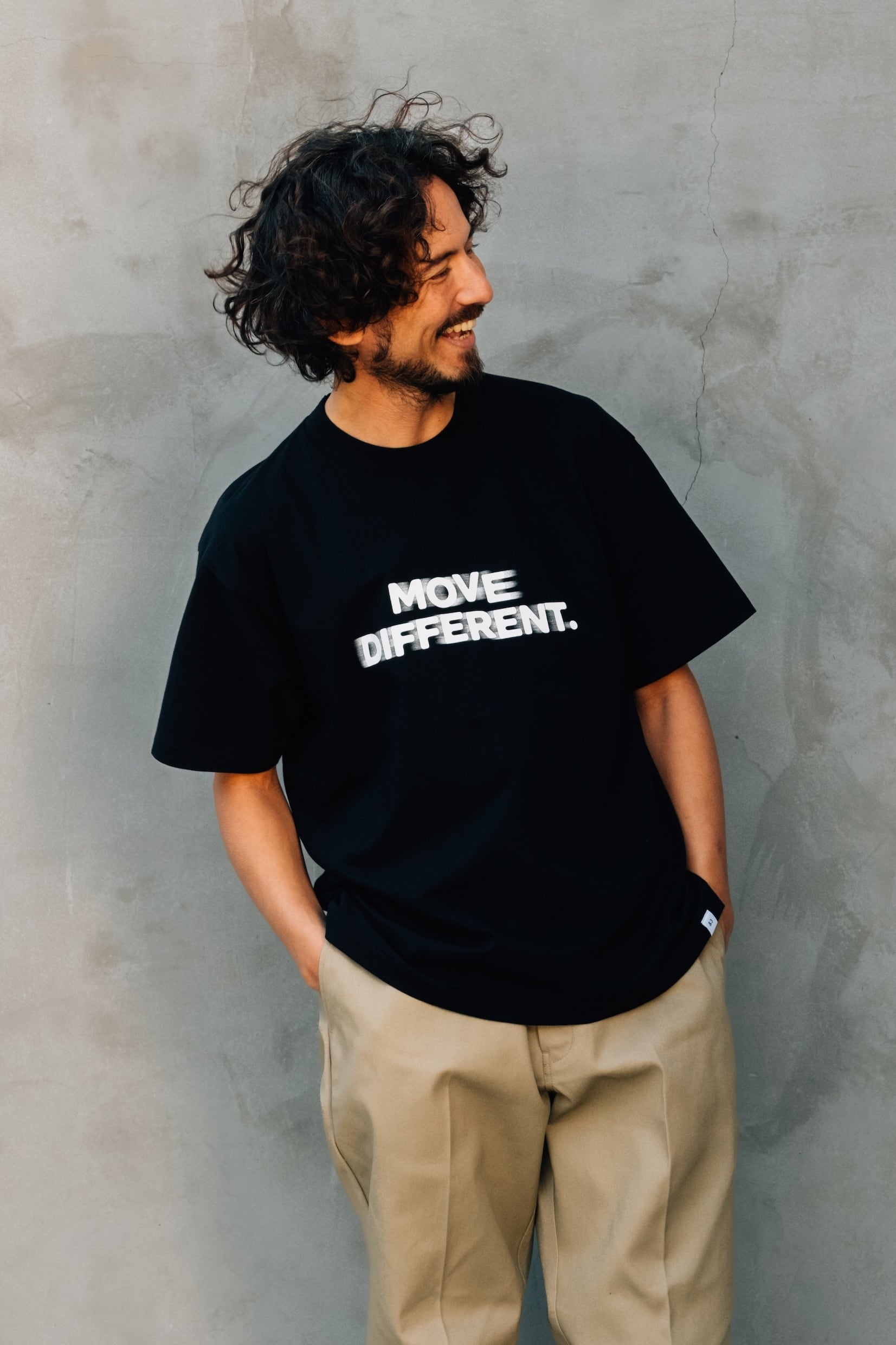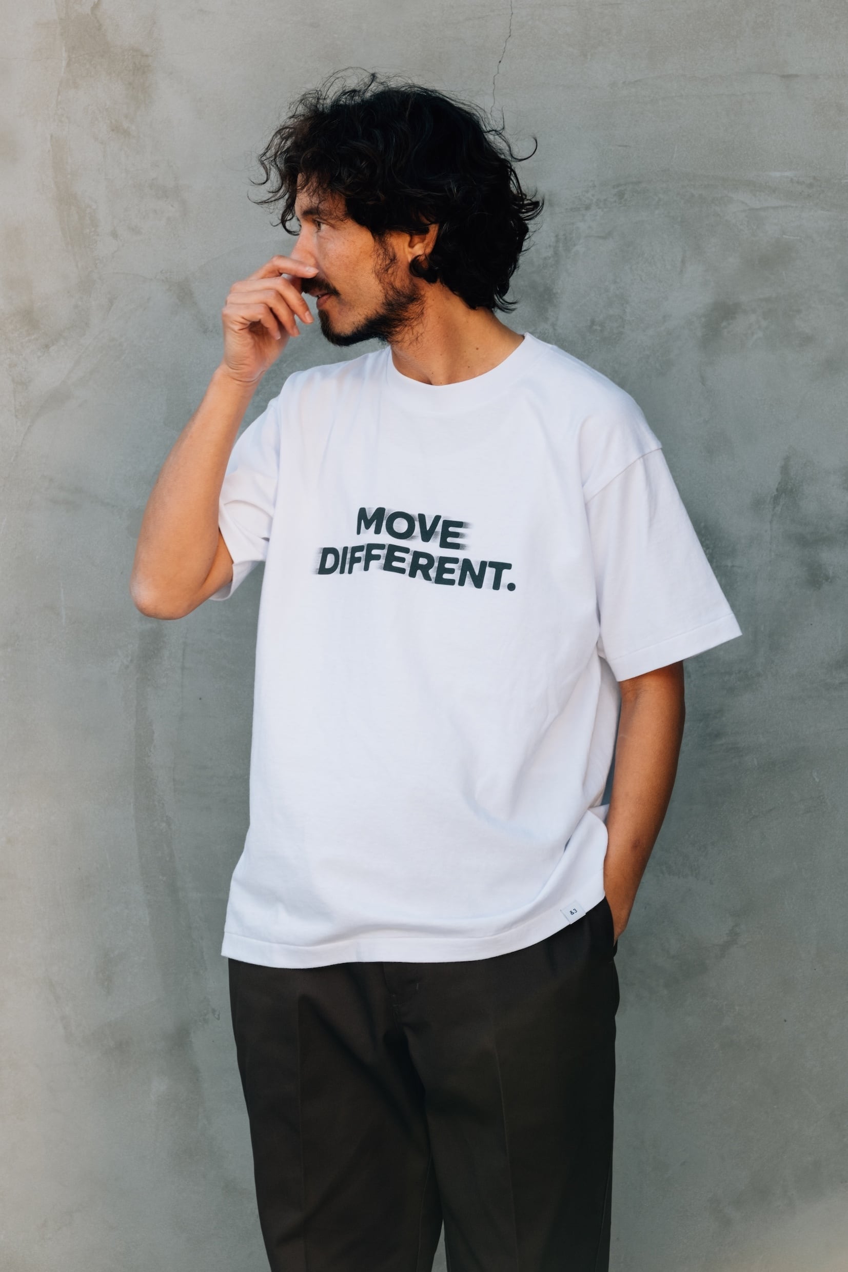 "CIRCLE CIRCLE" x "BEDWIN & THE HEARTBREAKERS”の CAPSULE COLLABORATION (3RD DROP)。胸元に大きく配した「MOVE DIFFERENT」。